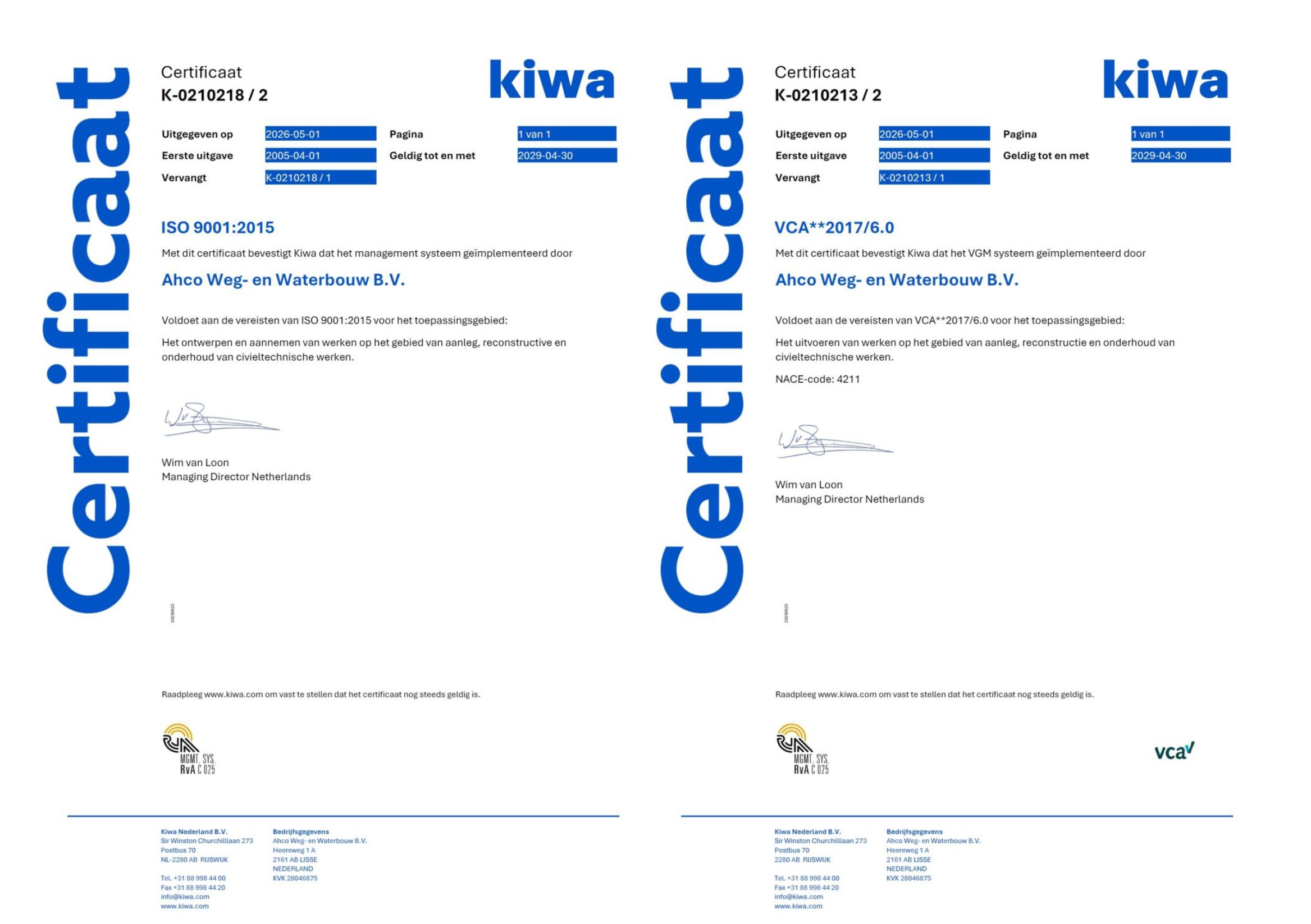 AHCO Weg- en Waterbouw B.V. voert projecten uit op het gebied van wegenbouw, waterbouw, grondwerk, kabels en leidingen en terreininrichting.