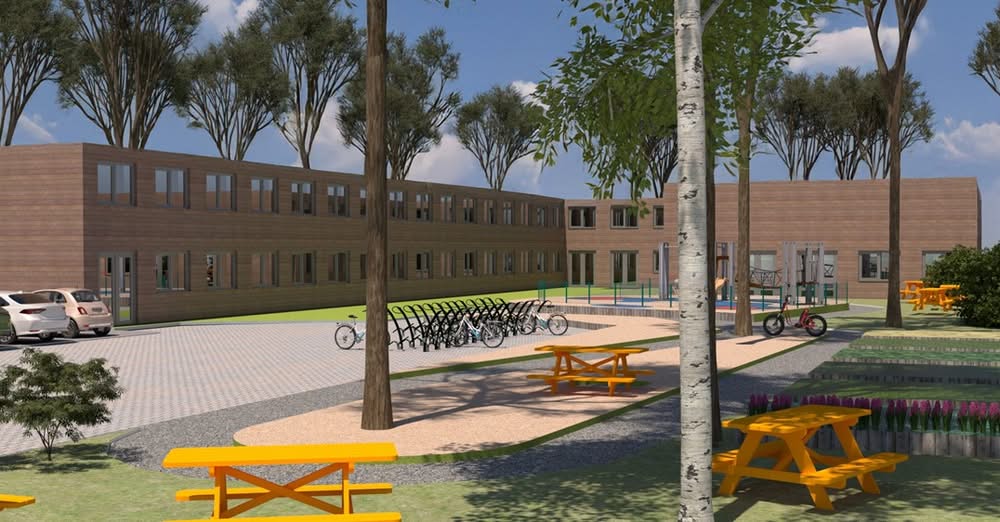 In opdracht van de Gemeente Hillegom leggen wij op Sportpark De Zanderij de opvanglocatie voor vluchtelingen uit Oekraïne opnieuw aan. In plaats van de stacaravans die in 2023 op het sportveld geplaatst zijn, wordt hier een tijdelijk gebouw met gestapelde units gebouwd.