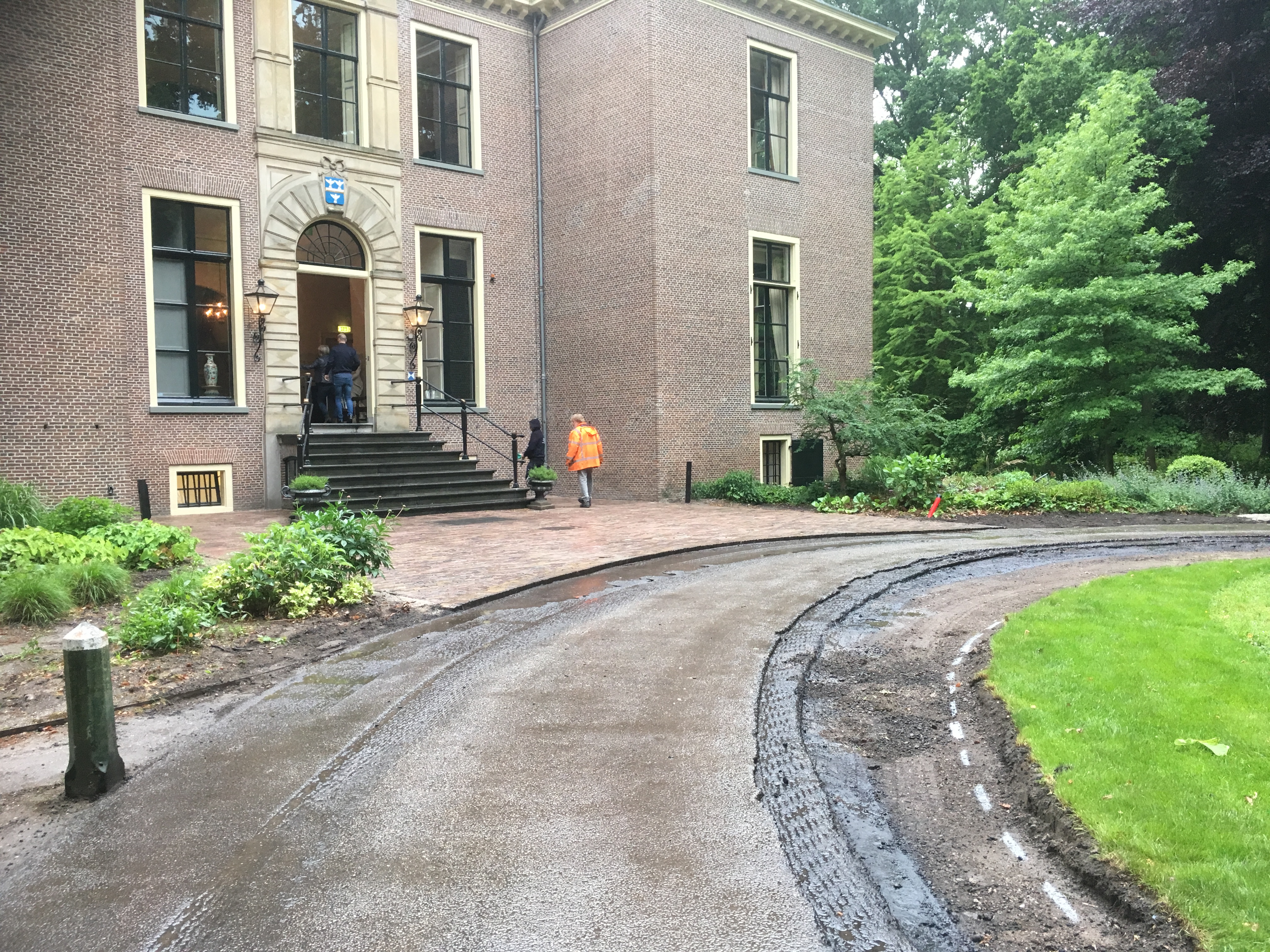 Op het terrein van Kasteel Oud-Poelgeest in Oegstgeest voeren wij terreinwerkzaamheden uit. Wij verzorgen de aanleg van het nieuwe parkeerterrein bij het koetshuis en het hotel. De bestrating in gele betonklinkers past goed bij de zandkleurige asfaltpaden op het landgoed.
